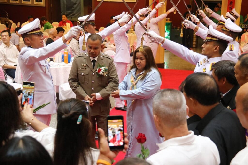 จากนั้นเวลา 19:00 น. ผู้เกษียณอายุราชการ พร้อมด้วยคู่สมรส ร่วมในพิธีอันทรงเกียรติ ‘ลอดซุ้มกระบี่” จากนั้นเวลา 19.20 น. พ.ต.อ.วิทวัส เข่งคุ้ม ผกก.สน.พลับพลาไชย 2 ได้มอบโล่เกียรติคุณแก่ผู้เกษียณฯ พร้อมกันนี้ คณะ กต.ตร.และที่ปรึกษา ร่วมกันมอบของที่ระลึกให้แก่ผู้เกษียณทั้ง 6 นาย