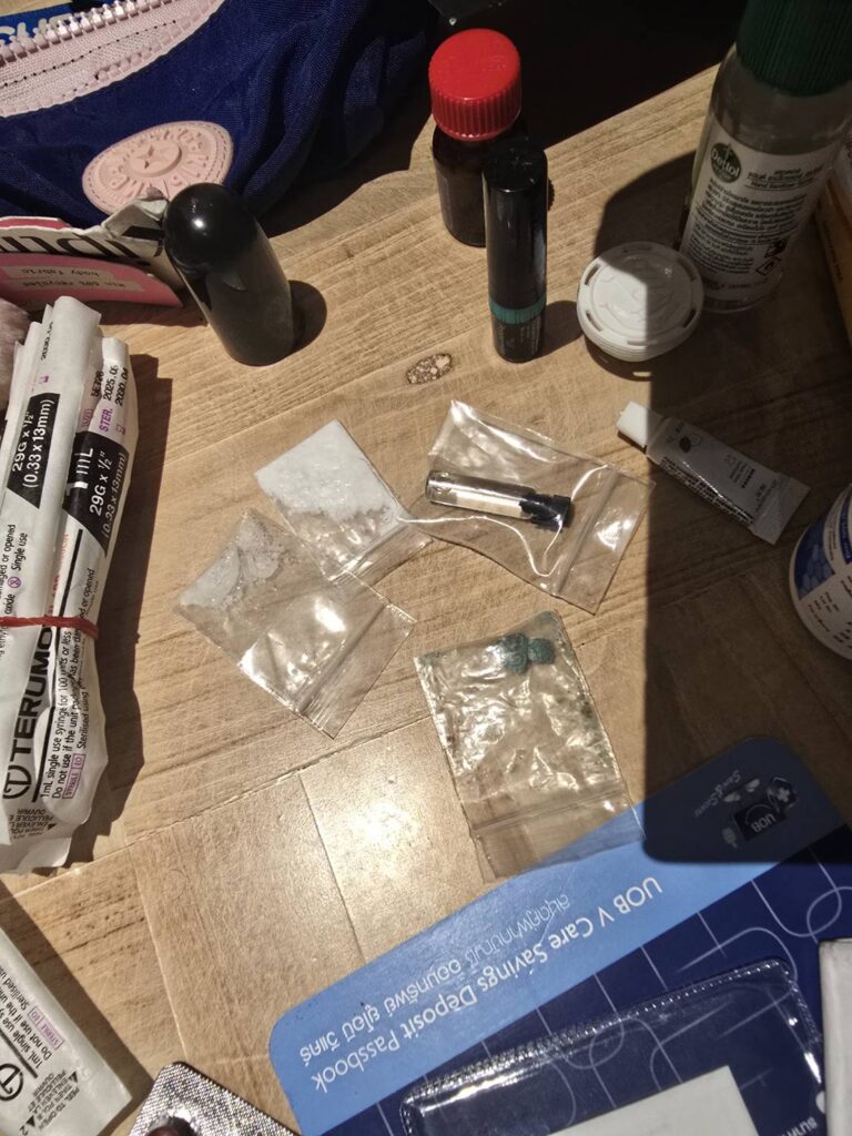 1.นายทวีพล อายุ 35 ปี ภูมิลำเนา แขวงอ่อนนุช เขตสวนหลวง จ.กรุงเทพฯ ถูกแจ้งข้อหา “มีไว้ในความครอบครองซึ่งยาเสพติดให้โทษประเภท 1 (เมทแอมเฟตามีน,ยาบ้า,ยาไอซ์ และยาอี) โดยฝ่าฝืนต่อกฎหมาย , มีไว้ในความครอบครองซึ่งยาเสพติดให้โทษประเภท 2 (เคตามีน) เพื่อเสพโดยฝ่าฝืนต่อกฎหมาย , จำหน่ายหรือจัดหาสารระเหยให้แก่ผู้ซึ่งตนรู้หรือควรรู้ว่าเป็นผู้ติดสารระเหย และเสพยาเสพติดให้โทษประเภท 1 โดยฝ่าฝืนต่อกฎหมาย”