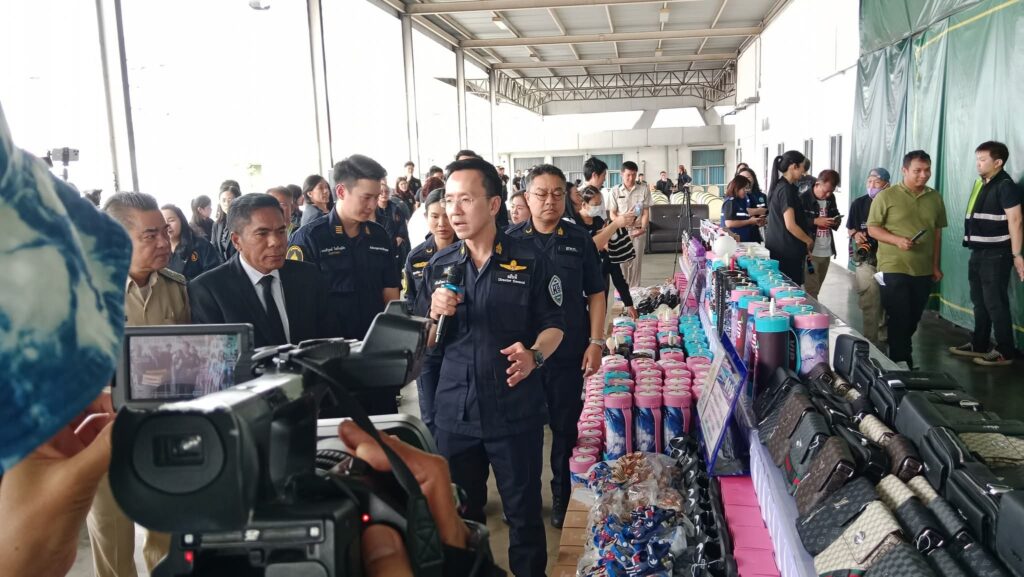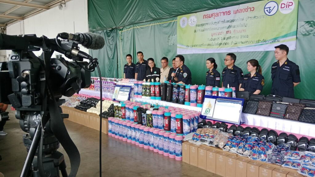 วันที่ 3 พฤศจิกายน 2568 นายพันธ์ทอง ลอยกุลนันท์ อธิบดีกรมศุลกากร แถลงข่าวผลการปราบปรามการนำเข้าสินค้าก๊าซไนตรัสออกไซด์ (ก๊าซหัวเราะ) สินค้าละเมิดเครื่องหมายการค้าและเฮโรอีน มูลค่ารวมกว่า 159 ล้านบาท โดยระบุว่าการดำเนินการดังกล่าวเป็นไปตามนโยบายของกรมศุลกากรในการปกป้องสังคมจากสินค้าผิดกฎหมาย โดยมี นางสาวสุนทรียา ทวิชาประสิทธิ์ รองอธิบดีกรมศุลกากร พร้อมด้วยนายอาวุธ วงศ์สวัสดิ์ รองอธิบดีกรมทรัพย์สินทางปัญญา นายแถมสิน ศรีบางพลีน้อย รองผู้อำนวยการท่าเรือกรุงเทพ การท่าเรือแห่งประเทศไทย และนางสาวอรอนงค์ ตัณฑวิวัฒน์ เภสัชกรชำนาญการพิเศษ หัวหน้าด่านสำนักงานคณะกรรมการอาหารและยา ท่าเรือกรุงเทพ เข้าร่วมแถลงข่าว ณ สำนักงานศุลกากรท่าเรือกรุงเทพ กรมศุลกากรนายพันธ์ทอง ลอยกุลนันท์ อธิบดีกรมศุลกากร เปิดเผยว่า กรมศุลกากรได้ให้ความสำคัญในการปกป้องสังคม โดยได้เพิ่มความเข้มงวดในการตรวจสอบควบคุมสินค้าที่มีความเสี่ยงในการทำผิดกฎหมายและก่อให้เกิดการค้าที่ไม่เป็นธรรม และปรับเปลี่ยนระบบการตรวจสอบสินค้าให้ทันสมัยเป็นสากล เพื่อเพิ่มประสิทธิภาพในการควบคุมสินค้าผิดกฎหมาย โดยไม่สร้างภาระให้แก่ผู้ประกอบการสุจริต ระหว่างเดือนกันยายน – ตุลาคม 2568 กรมศุลกากร โดยสำนักงานศุลกากรท่าเรือกรุงเทพ ตรวจสอบสินค้านำเข้า ต้นทางประเทศจีน สำแดงเป็นสินค้าเบ็ดเตล็ด จากการตรวจสอบพบว่า มีสินค้าบางส่วนไม่ได้สำแดงในใบขนสินค้า และยังพบว่าเป็นสินค้าละเมิดเครื่องหมายการค้า เช่น รองเท้าแตะ แบตเตอรี่ กระเป๋า และแก้วเก็บอุณหภูมิ รวมทั้งสิ้น 70 หีบห่อ จำนวน 18,175 ชิ้น มูลค่าความเสียหายทางเศรษฐกิจกว่า 55 ล้านบาท กรณีดังกล่าวเป็นการนำสินค้าต้องห้ามเข้ามาในราชอาณาจักร ตามประกาศกระทรวงพาณิชย์ เรื่อง กำหนดให้สินค้าละเมิดเครื่องหมายการค้าและสินค้าละเมิดลิขสิทธิ์เป็นสินค้าที่ต้องห้ามส่งออก ห้ามนำเข้า และห้ามนำผ่านราชอาณาจักร พ.ศ. 2565 และเป็นการละเมิดเครื่องหมายการค้า อันเป็นความผิดตามมาตรา 202 244 252 166 และ 167 แห่ง พ.ร.บ. ศุลกากร พ.ศ. 2560 ประกอบกับ พ.ร.บ. การส่งออกไปนอกและการนำเข้ามาในราชอาณาจักรซึ่งสินค้า พ.ศ. 2522 และ พ.ร.บ. เครื่องหมายการค้า พ.ศ. 2534 นอกจากนี้ เมื่อวันที่ 29 ตุลาคม 2568 เจ้าหน้าที่ตรวจสอบสินค้านำเข้าจากประเทศจีน พบก๊าซไนตรัสออกไซด์ (ก๊าซหัวเราะ) จำนวน 2,670 ชิ้น มูลค่ากว่า 44 ล้านบาท ไม่ได้สำแดงมาในใบขนสินค้า ก๊าซดังกล่าวเป็นยาที่ใช้ตามโรงพยาบาลสำหรับดมสลบก่อนผ่าตัดหรือถอนฟัน เพื่อลดอาการปวด ออกฤทธิ์ และหมดฤทธิ์เร็ว หากสูดดมเข้าไปมากจะทำให