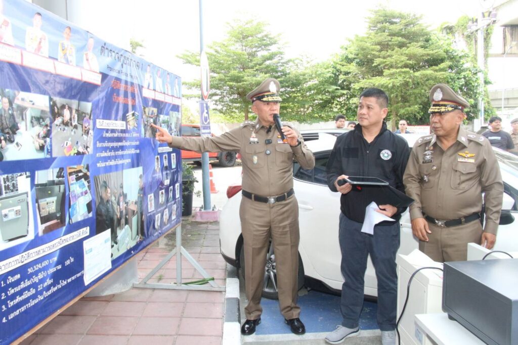 ผบช.ภ.1 แถลงข่าวผลการจับกุมปฏิบัติการกวาดล้างเว็บพนันออนไลน์ และ ปราบสแกมเมอร์ 2 คดี