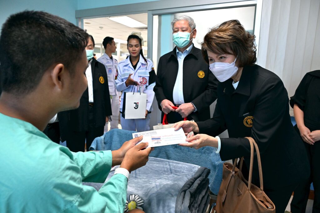 มูลนิธิป่อเต็กตึ๊ง นำกระเช้าเข้าเยี่ยมเยียน พร้อมมอบเงินปลอบขวัญให้กำลังใจแก่ทหารที่ได้รับบาดเจ็บจากเหตุปะทะชายแดนไทย-กัมพูชา ณ โรงพยาบาลพระมงกุฎเกล้า กรุงเทพฯ